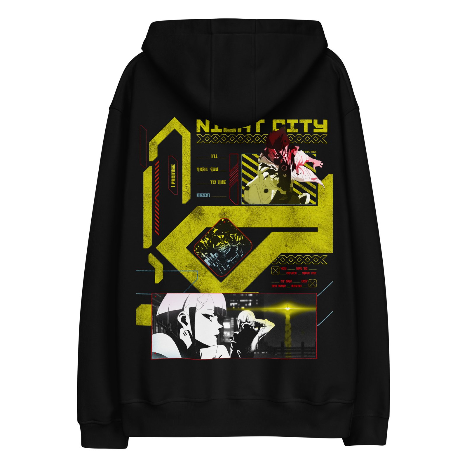 An exclusive hoodie made by Onyx, inspired by the amazing Cyberpunk: Edgerunners series. The high-quality print will leave those who understand in awe of the design. Made from soft, premium eco fabric, this hoodie offers unbeatable comfort and style.